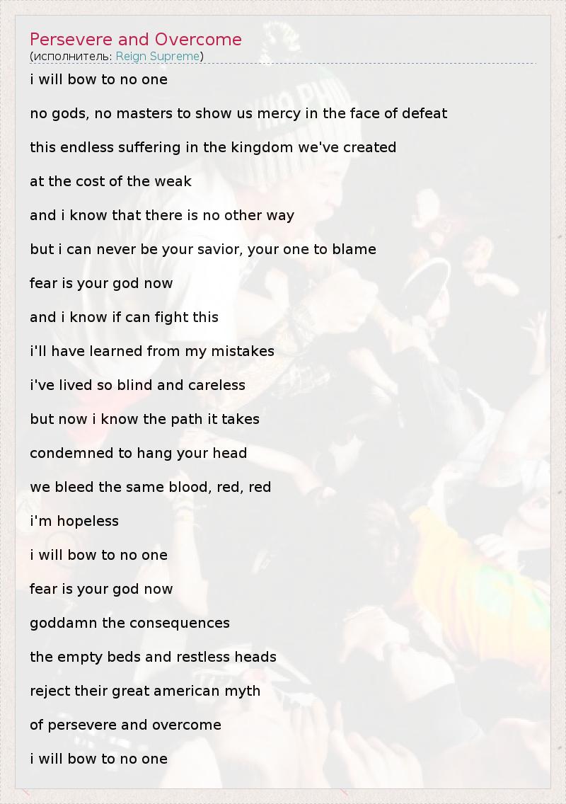 А как ты думаешь, о чем песня "Persevere and Overcome" ?