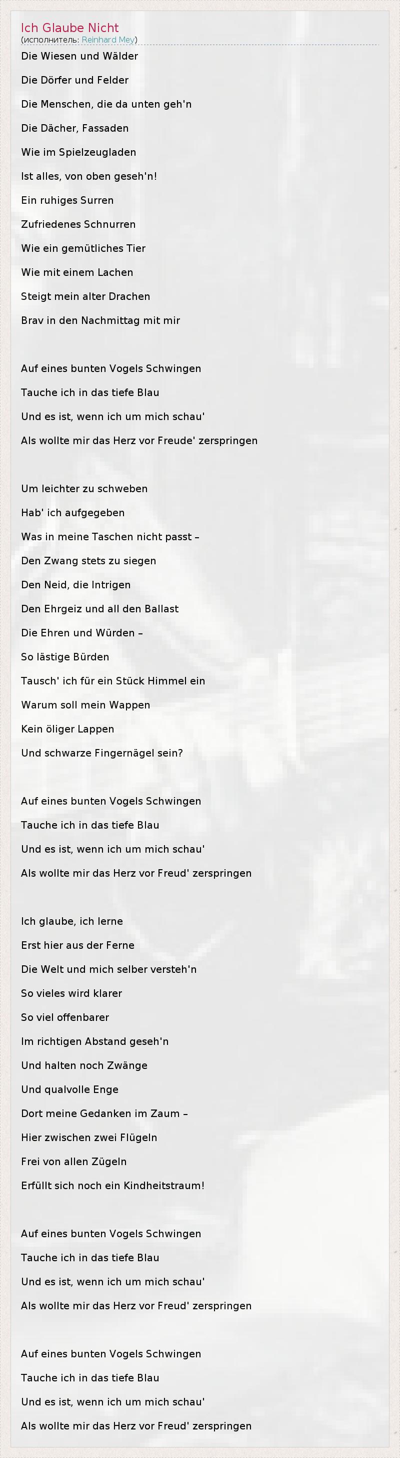 А как ты думаешь, о чем песня "Ich Glaube Nicht" ?