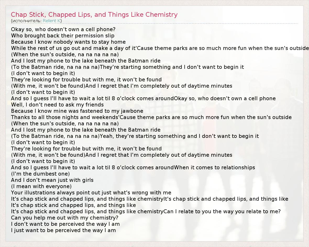 А как ты думаешь, о чем песня "Chap Stick, Chapped Lips, and Things Like Chemistry" ?