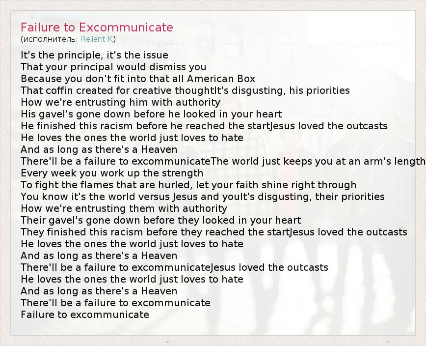 А как ты думаешь, о чем песня "Failure to Excommunicate" ?