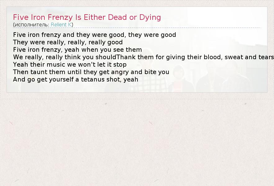 А как ты думаешь, о чем песня "Five Iron Frenzy Is Either Dead or Dying" ?