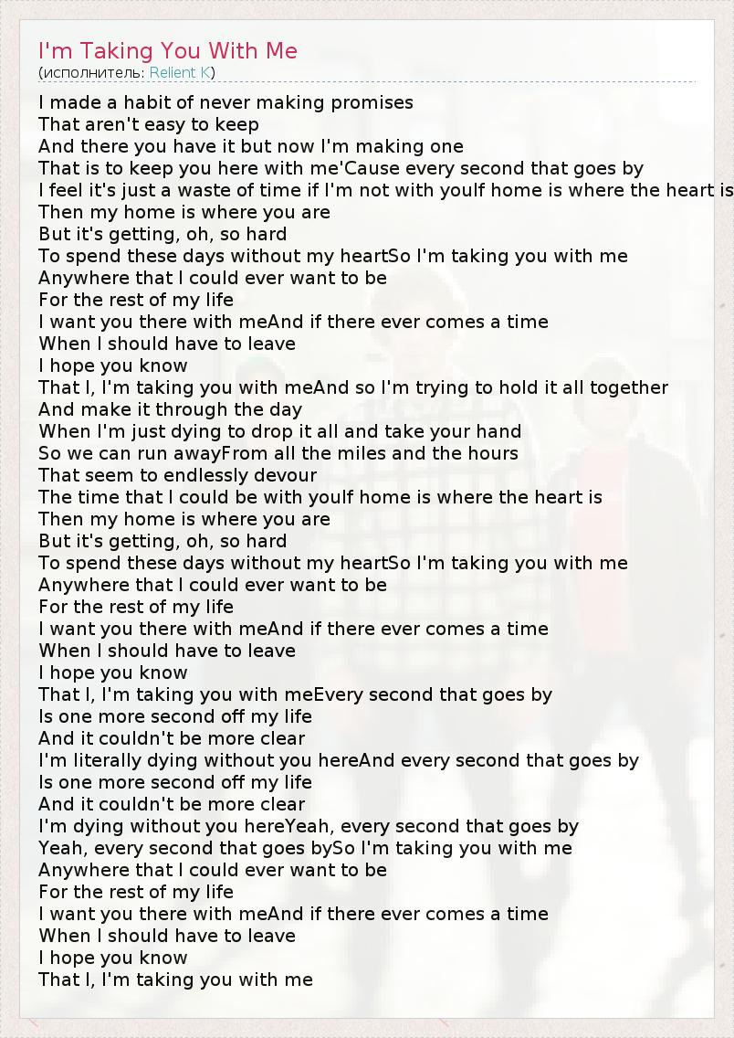 ГлавнаяИсполнителиRelient KI'm Taking You With Me