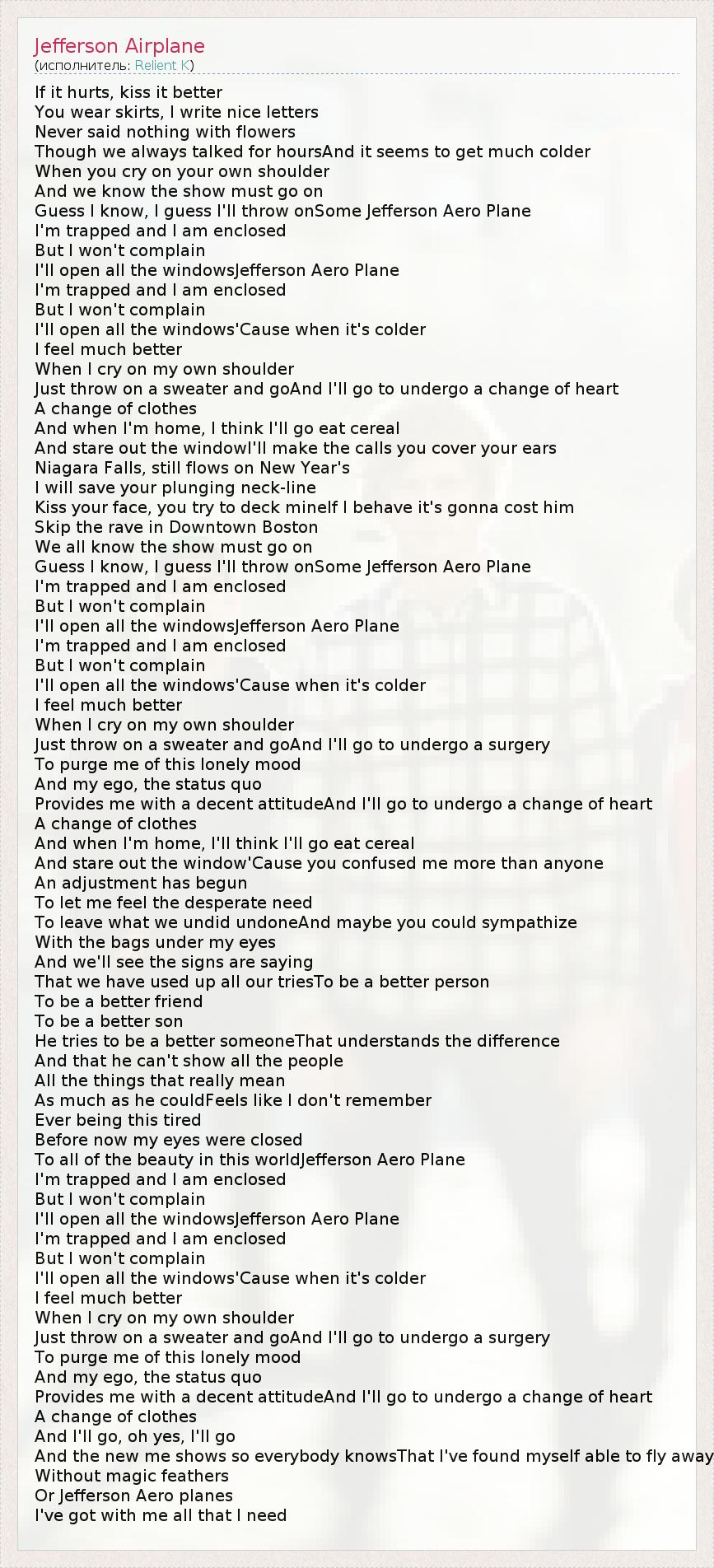 А как ты думаешь, о чем песня "Jefferson Airplane" ?