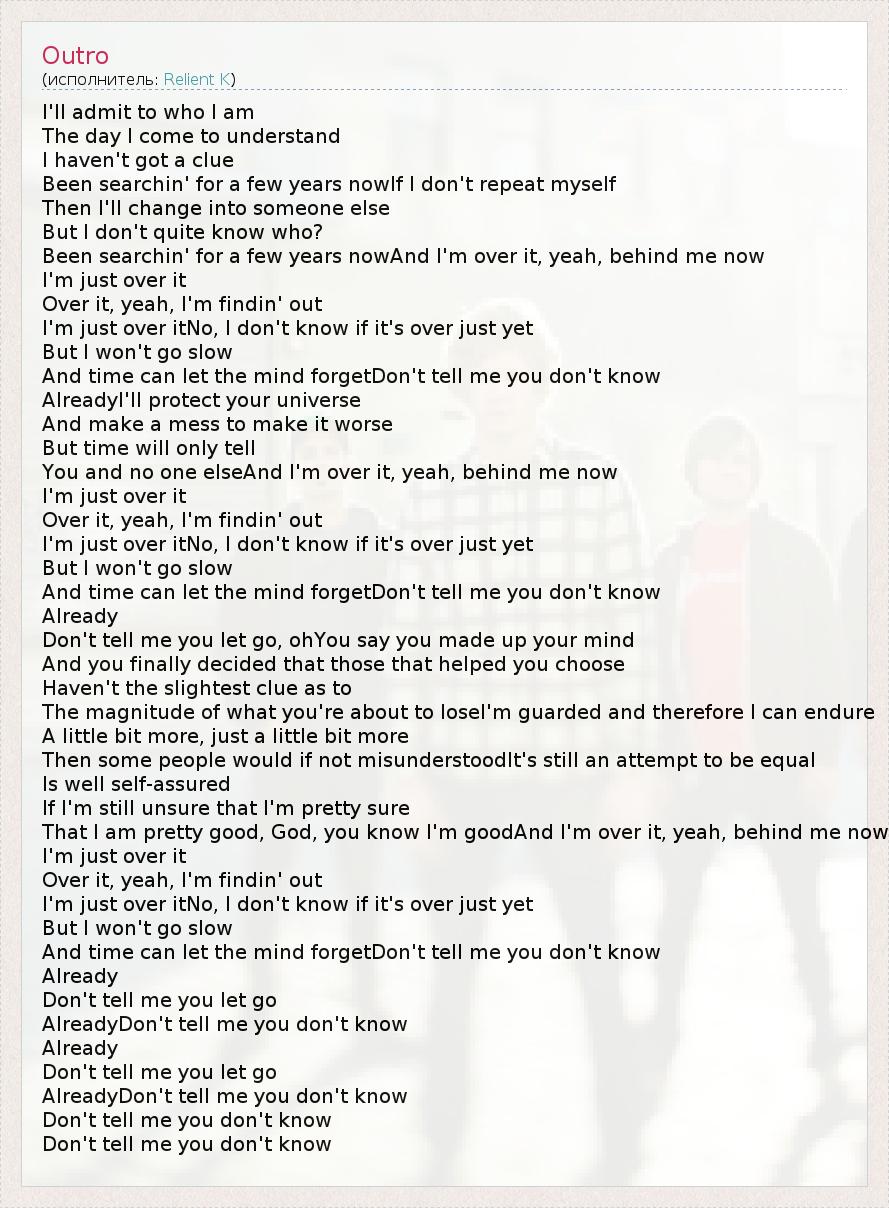 That I am pretty good, God, you know I'm goodAnd I'm over it, yeah, behind me now