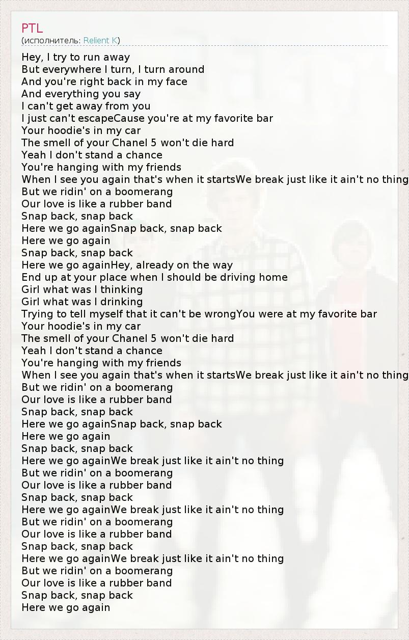 Это интересно:Relient K начался с дружбы Мэтта Хупса, Браина Питтмана и Мэтта Тиссона. Все трое парней ходили в одну церковь в городе Кантон (штат Огайо), вместе играли на гитарах, и сочиняли свои песни, мечтая о группе. В те ранние годы ребята висели на музыке NoFX, Blink 182, The Matches, Weezer, Jethro Tull, Ben Folds и Beach boys. Из христианских групп ребята слушали Mxpx, Ghoti Hook, Five Iron Frenzy, Slick Shoes, OC Supertones и т.п.Когда Мэтт Тиссон был... продолжение