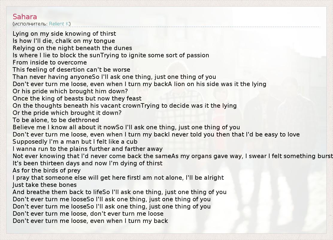Don't ever turn me looseSo I'll ask one thing, just one thing of you