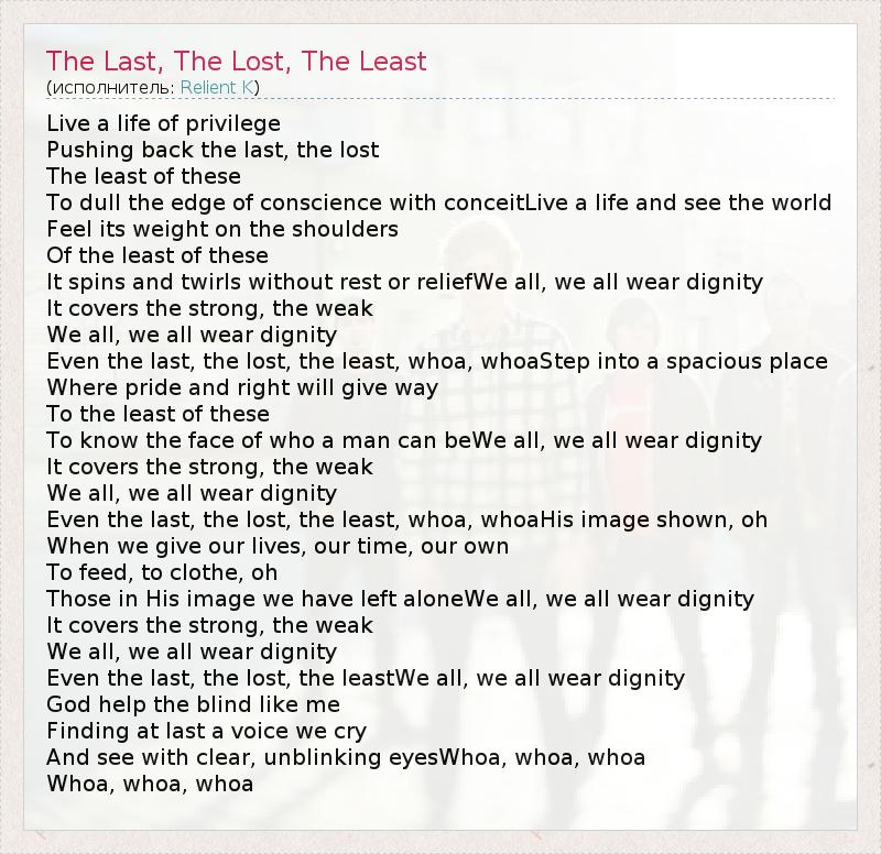 А как ты думаешь, о чем песня "The Last, The Lost, The Least" ?