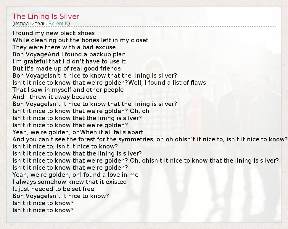 А как ты думаешь, о чем песня "The Lining Is Silver" ?