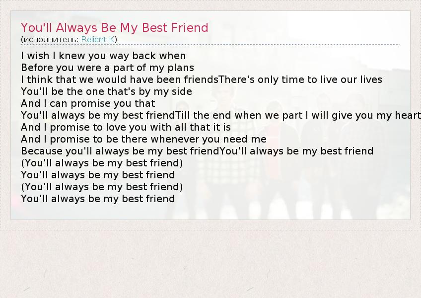 ГлавнаяИсполнителиRelient KYou'll Always Be My Best Friend