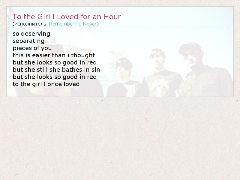 ГлавнаяИсполнителиRemembering NeverTo the Girl I Loved for an Hour