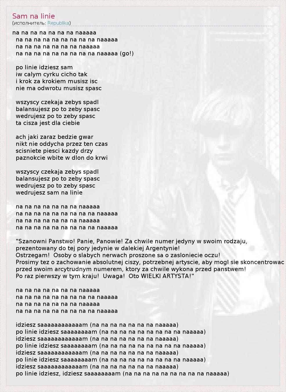 po linie idziesz saaaaaaaam (na na na na na na na na na naaaaa)