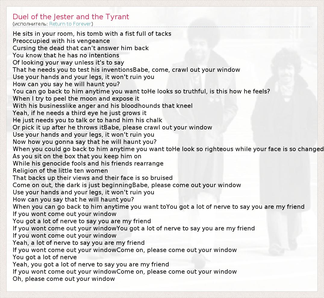 ГлавнаяИсполнителиReturn to ForeverDuel of the Jester and the Tyrant