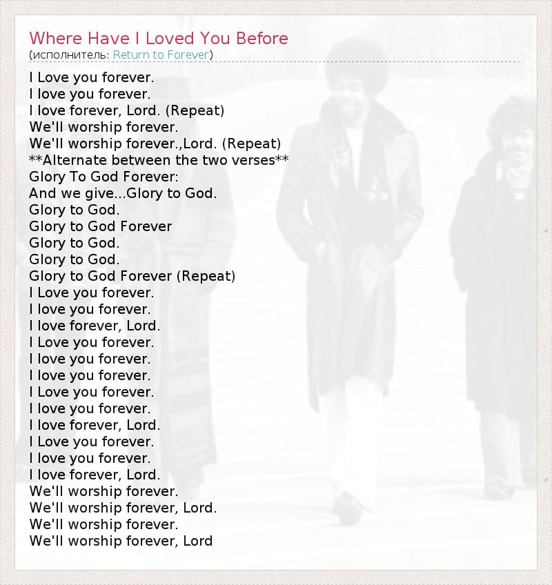 ГлавнаяИсполнителиReturn to ForeverWhere Have I Loved You Before