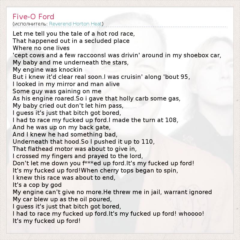 А как ты думаешь, о чем песня "Five-O Ford" ?