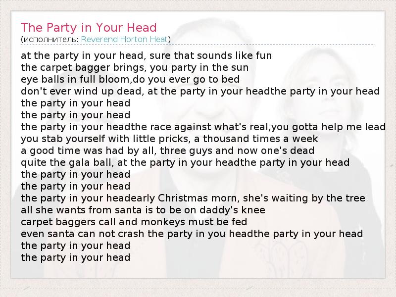 А как ты думаешь, о чем песня "The Party in Your Head" ?