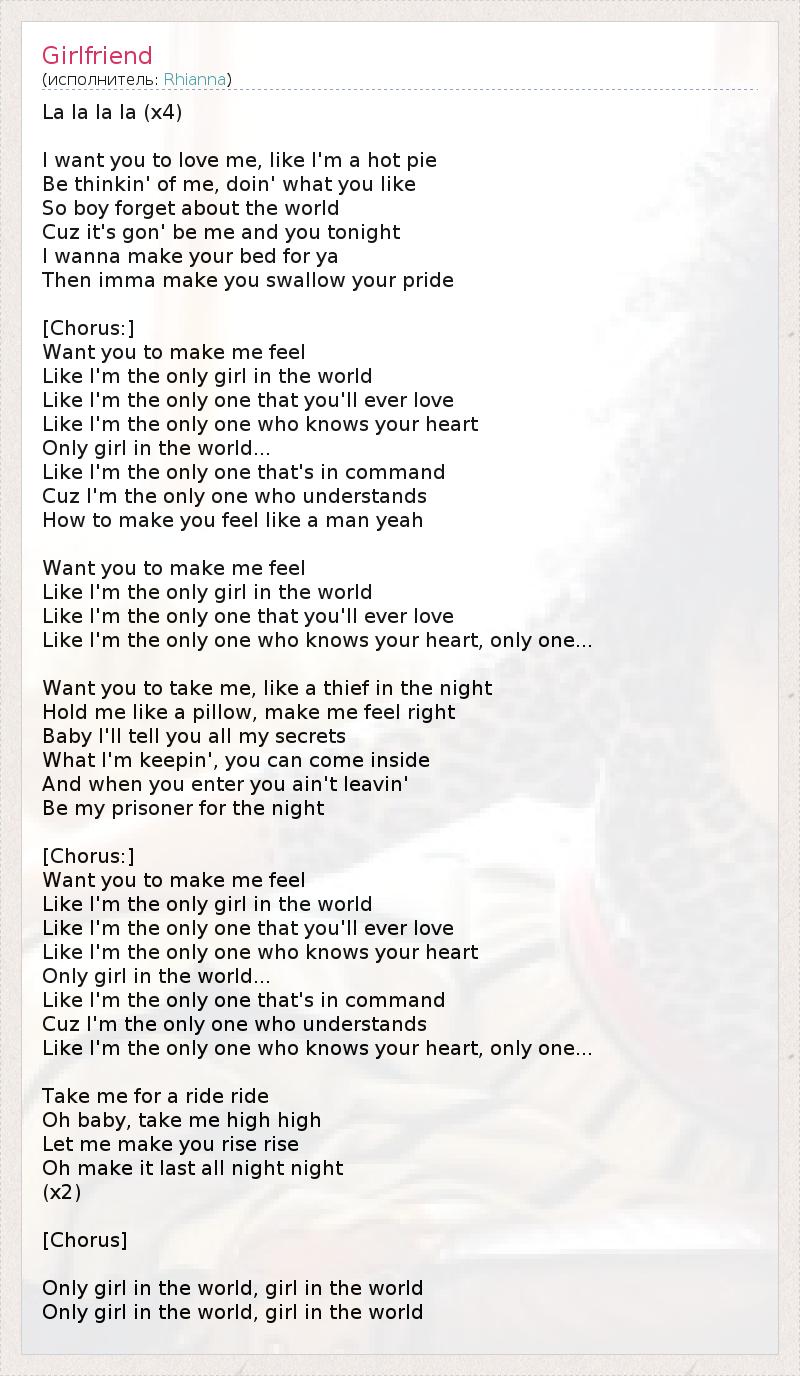 Only girl in the world, girl in the world