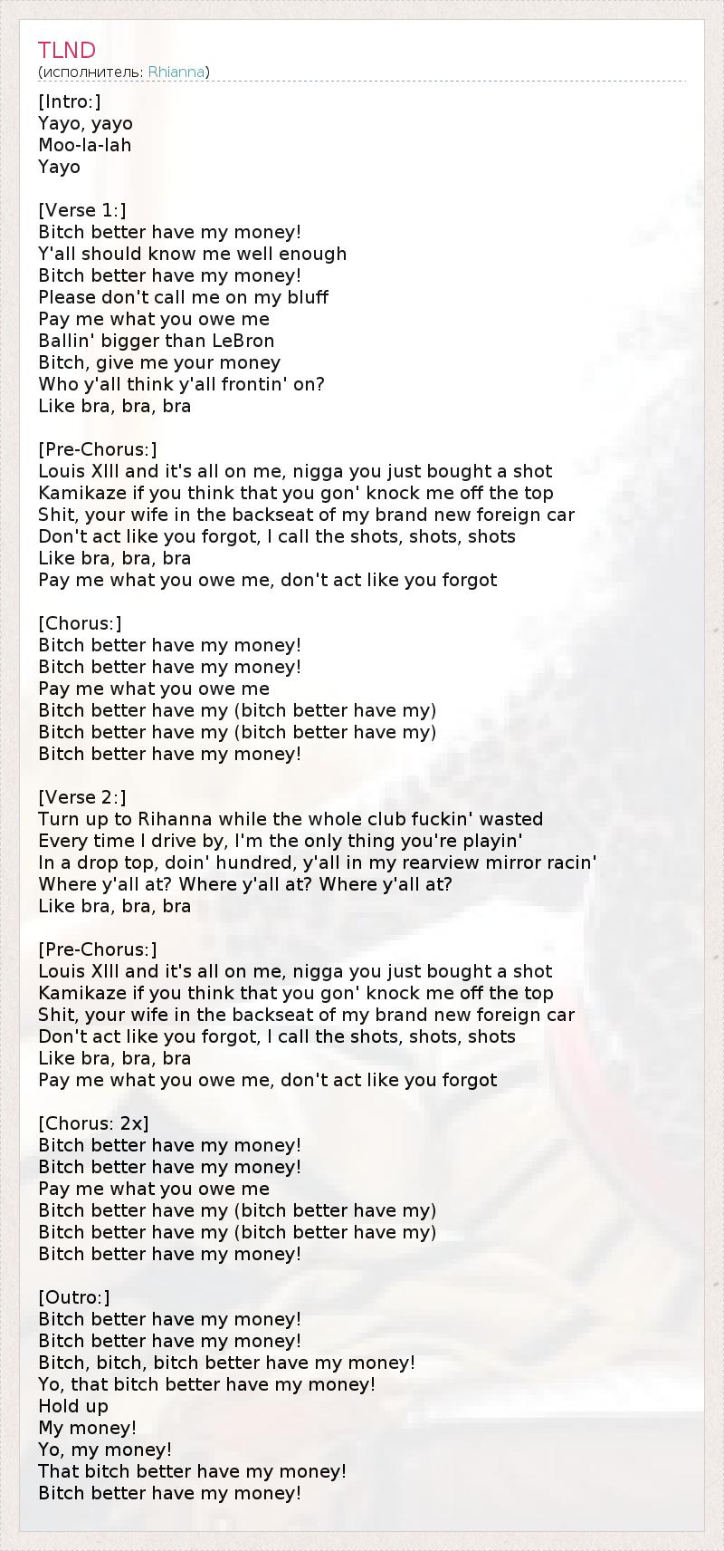 Bitch, bitch, bitch better have my money!