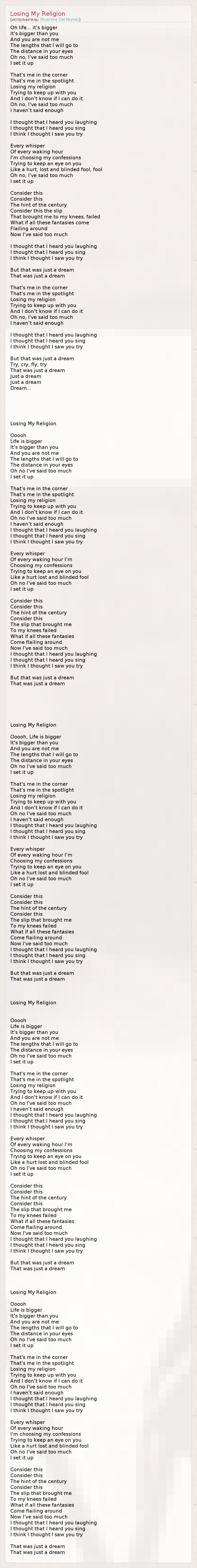 А как ты думаешь, о чем песня "Losing My Religion" ?