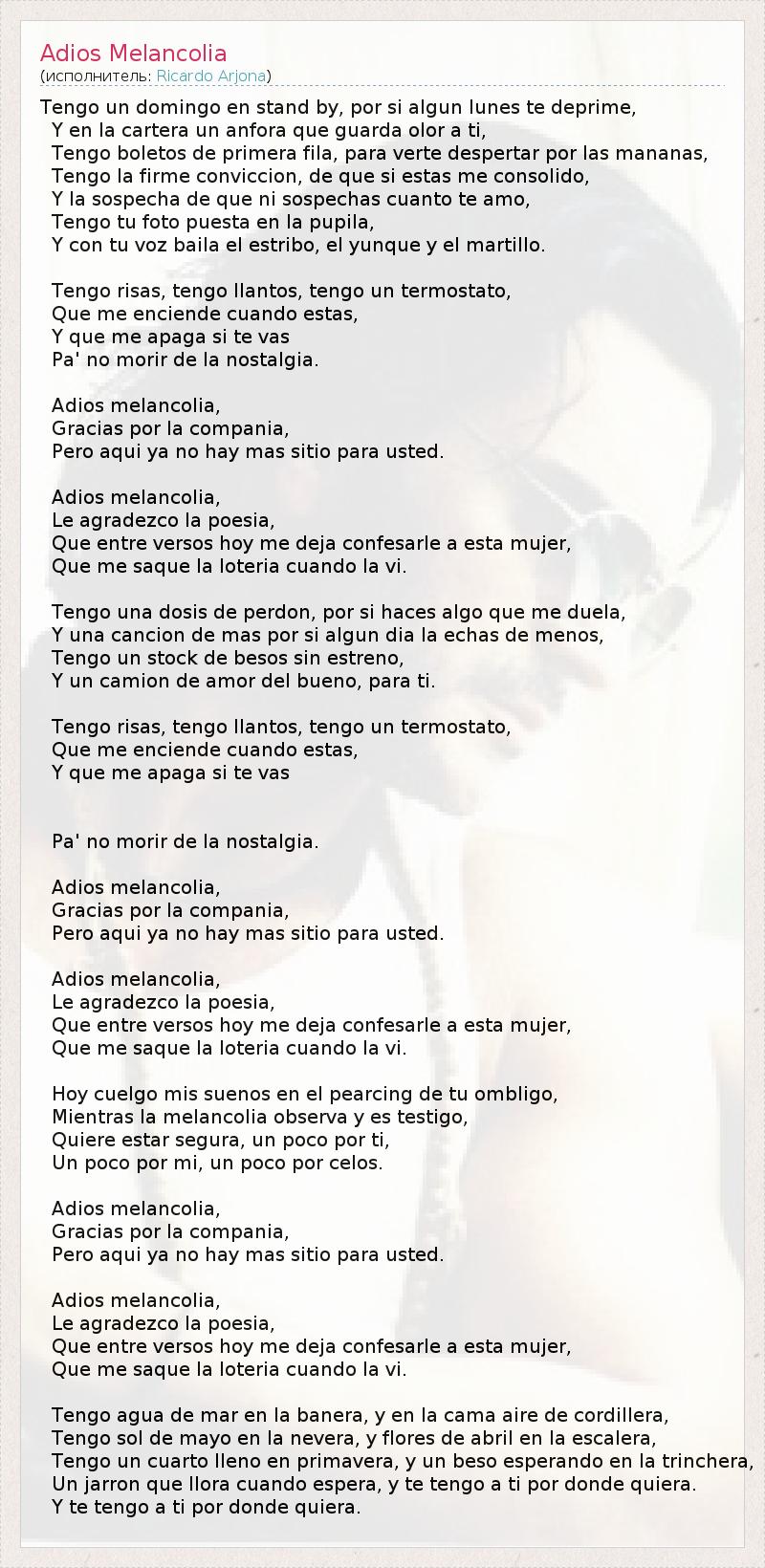 А как ты думаешь, о чем песня "Adios Melancolia" ?