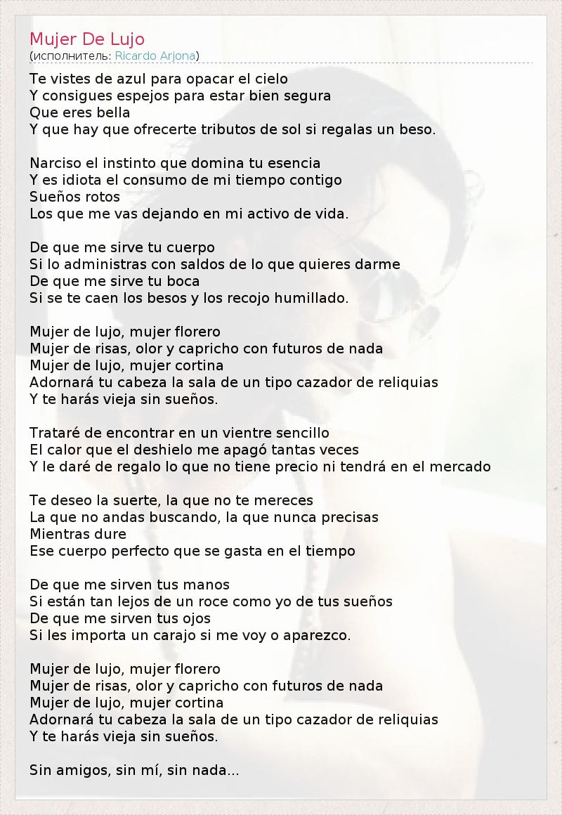 А как ты думаешь, о чем песня "Mujer De Lujo" ?