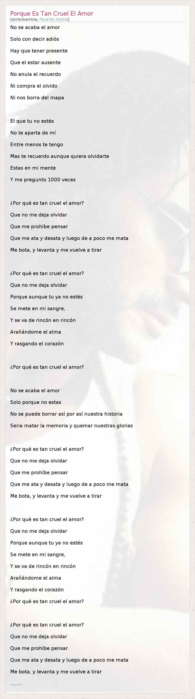ГлавнаяИсполнителиRicardo ArjonaPorque Es Tan Cruel El Amor