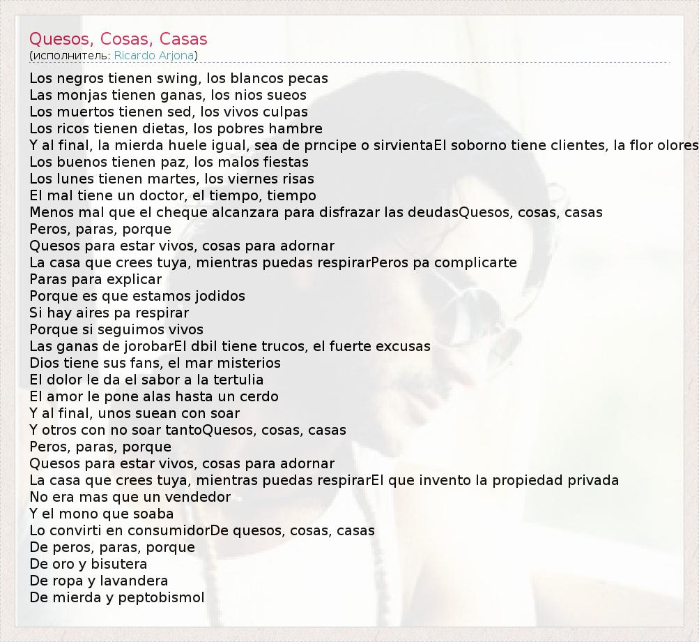 А как ты думаешь, о чем песня "Quesos, Cosas, Casas" ?