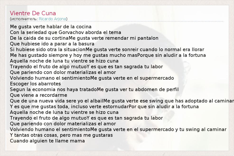 А как ты думаешь, о чем песня "Vientre De Cuna" ?