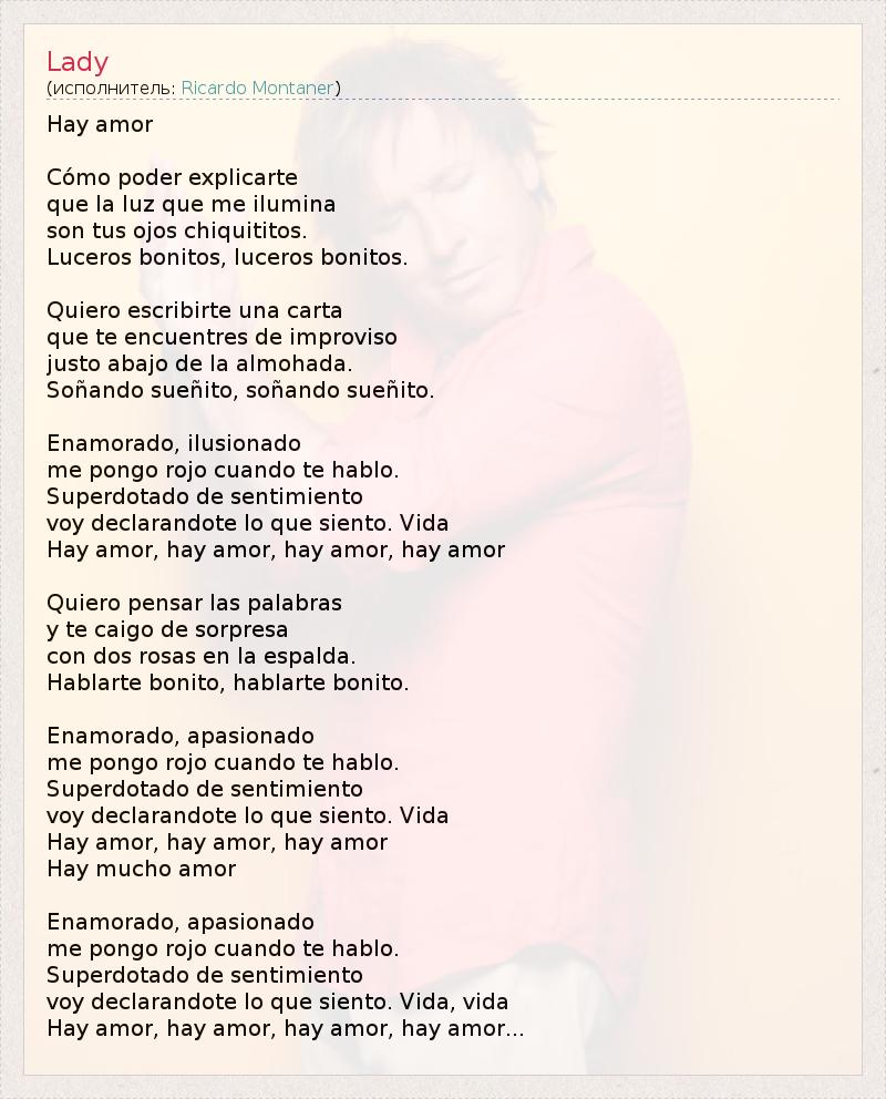 Hay amor Cómo poder explicarte que la luz que me ilumina son tus ojos chiquititos. Luceros bonitos, luceros bonitos. Quiero escribirte una carta que te encuentres de improviso justo abajo de la almohada. Soñando sueñito, soñando sueñito. Enamorado, ilusionado me pongo rojo cuando te hablo. Superdotado de sentimiento voy declarandote lo que siento. Vida Hay amor, hay amor, hay amor, hay amor Quiero pensar las palabras y te caigo de sorpresa con dos rosas en la espalda. Hablarte bonito, hablarte bonito. Enamorado, apasionado me pongo rojo cuando te hablo. Superdotado de sentimiento voy declarandote lo que siento. Vida Hay amor, hay amor, hay amor Hay mucho amor Enamorado, apasionado me pongo rojo cuando te hablo. Superdotado de sentimiento voy declarandote lo que siento. Vida, vida Hay amor, hay amor, hay amor, hay amor...