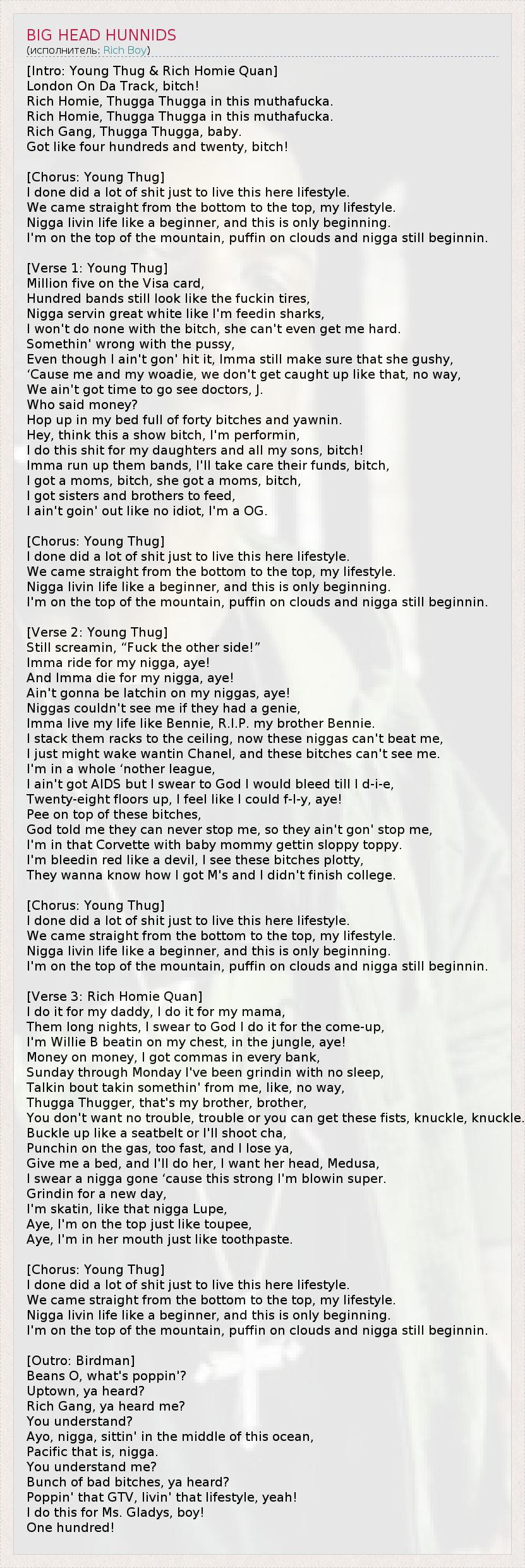 А как ты думаешь, о чем песня "BIG HEAD HUNNIDS" ?