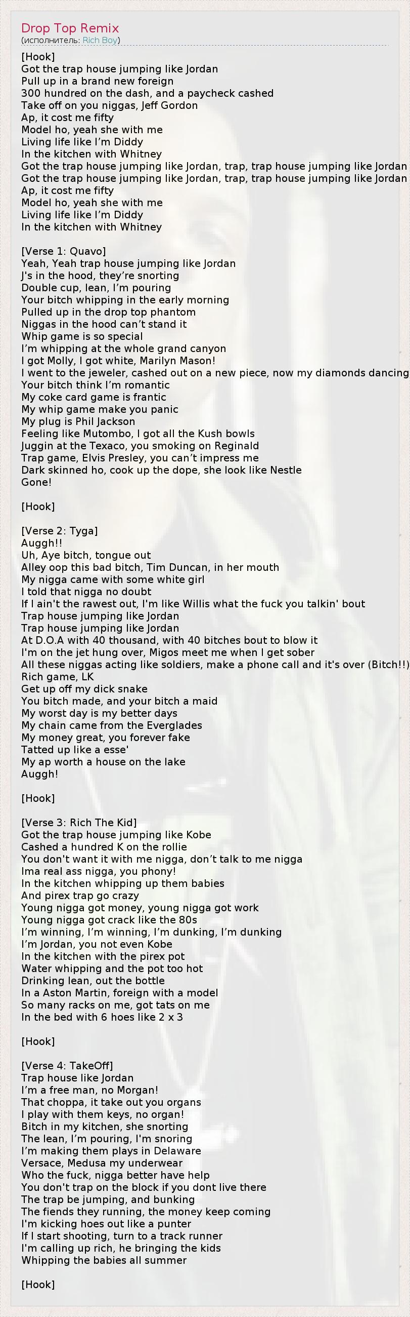 А как ты думаешь, о чем песня "Drop Top Remix" ?