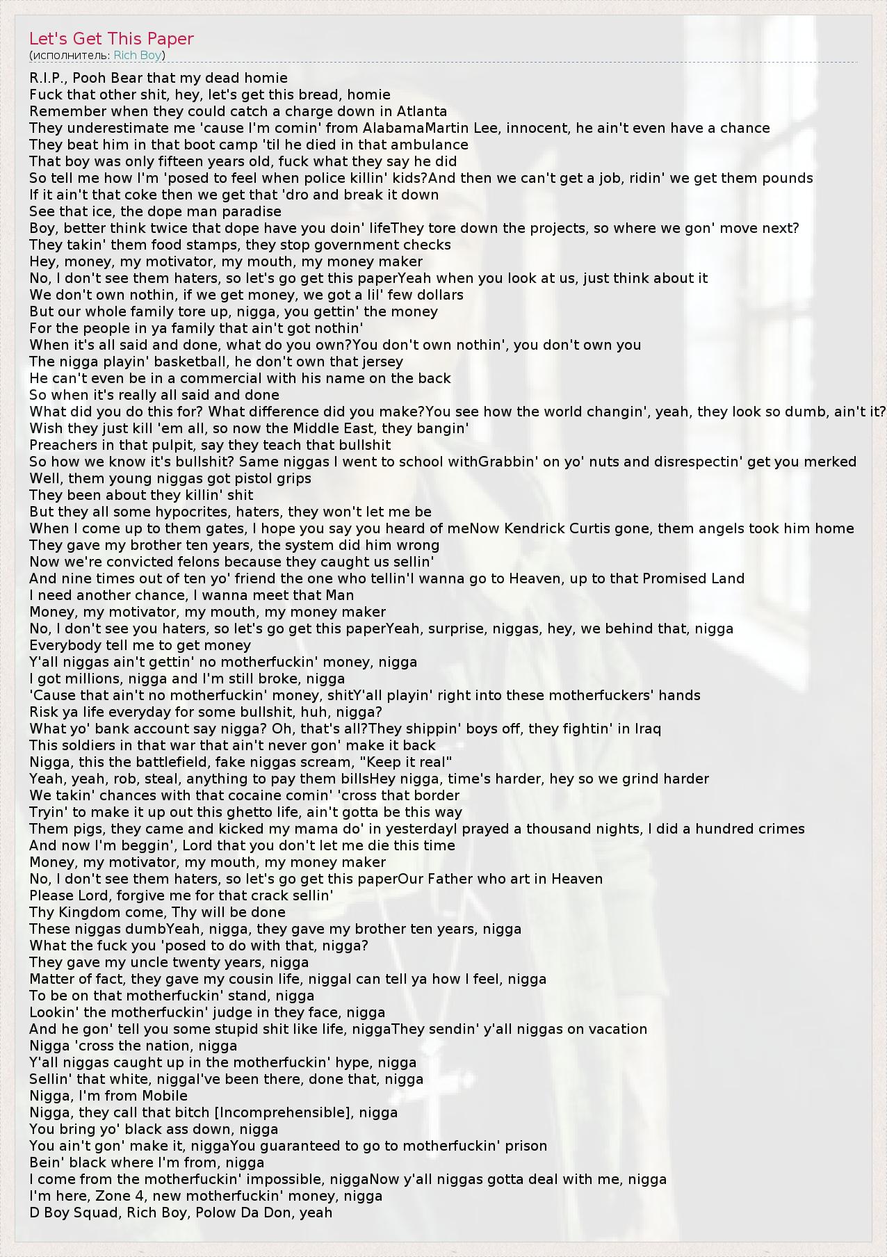 А как ты думаешь, о чем песня "Let's Get This Paper" ?