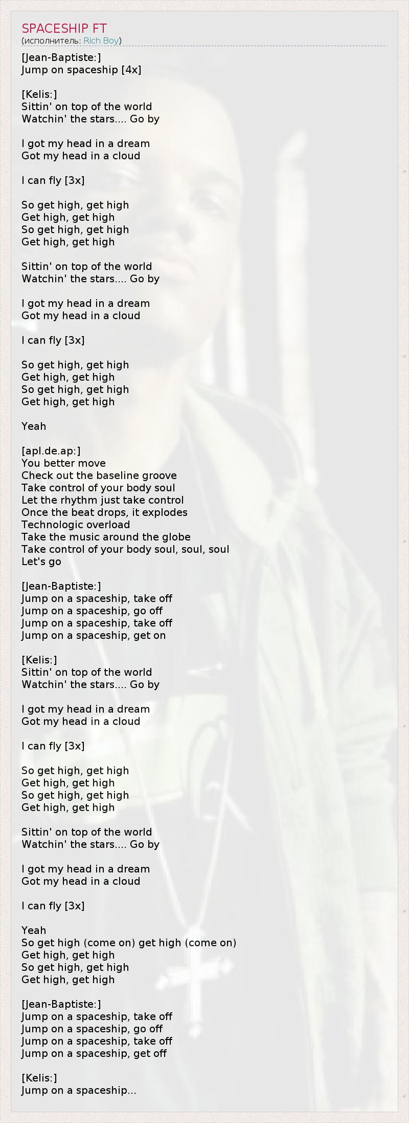 А как ты думаешь, о чем песня "SPACESHIP FT" ?