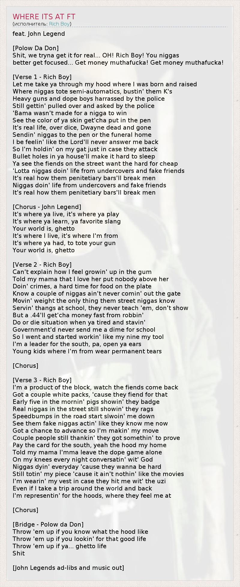 А как ты думаешь, о чем песня "WHERE ITS AT FT" ?