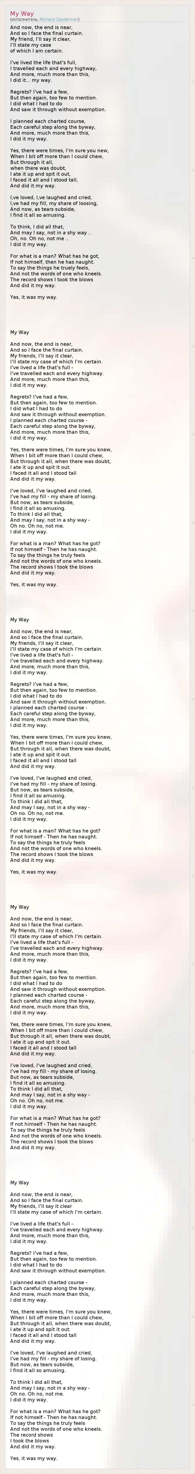 А как ты думаешь, о чем песня "My Way" ?