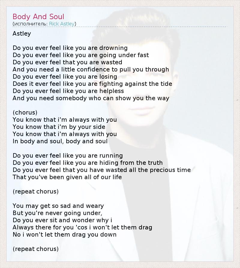 А как ты думаешь, о чем песня "Body And Soul" ?