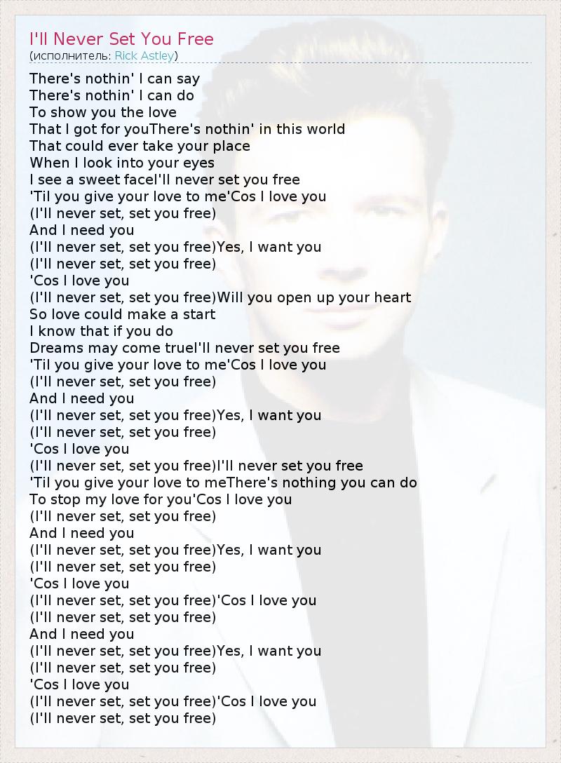 ГлавнаяИсполнителиRick AstleyI'll Never Set You Free