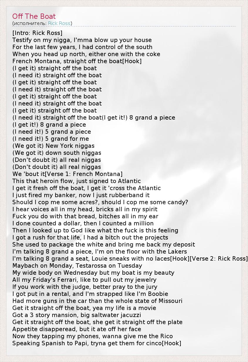 А как ты думаешь, о чем песня "Off The Boat" ?
