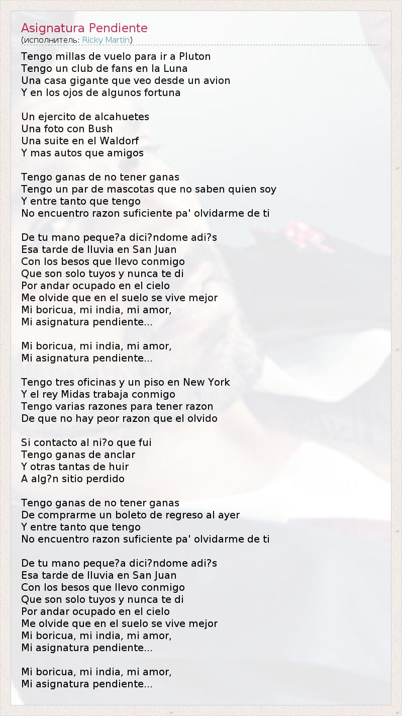 А как ты думаешь, о чем песня "Asignatura Pendiente" ?