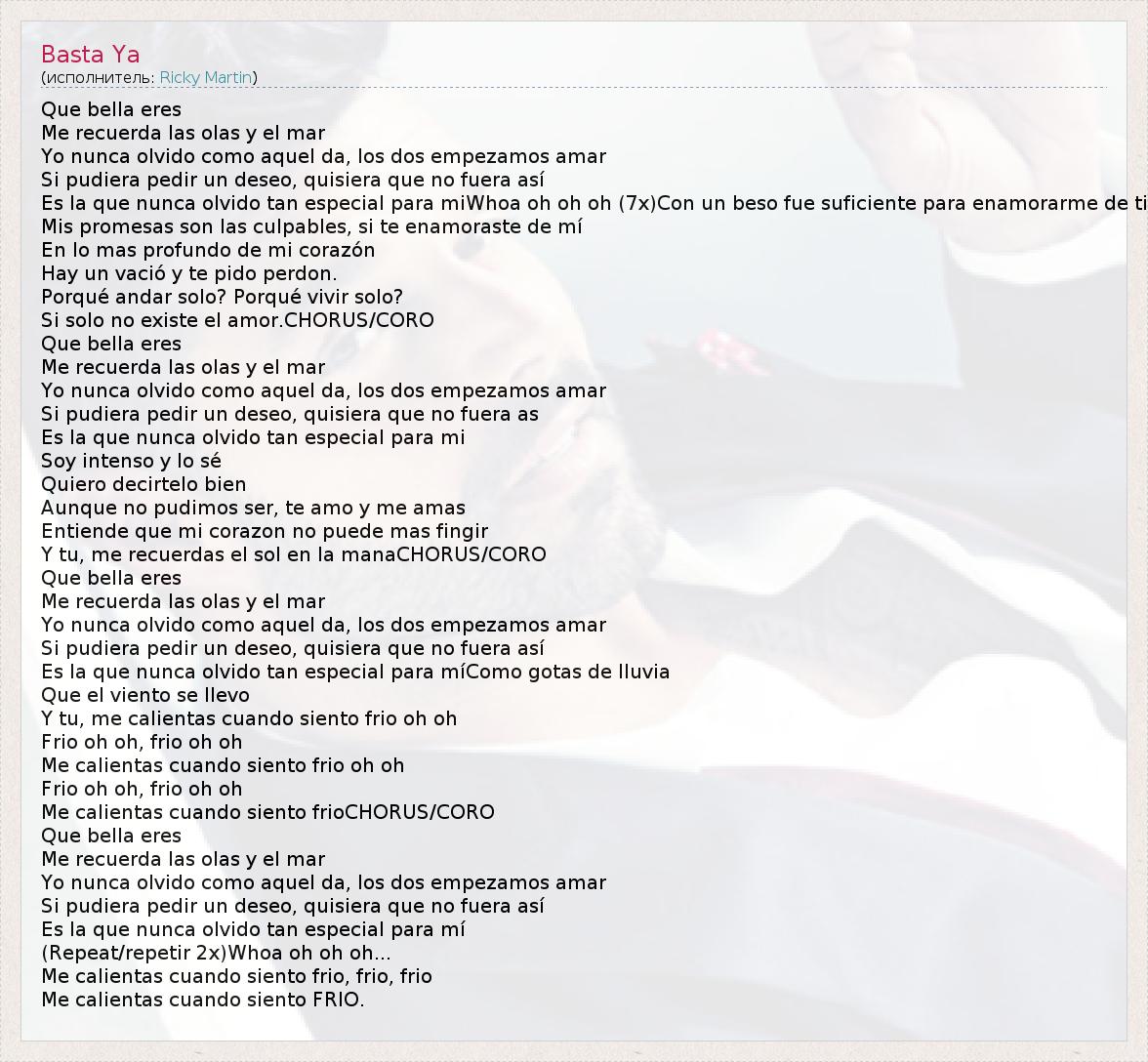 А как ты думаешь, о чем песня "Basta Ya" ?