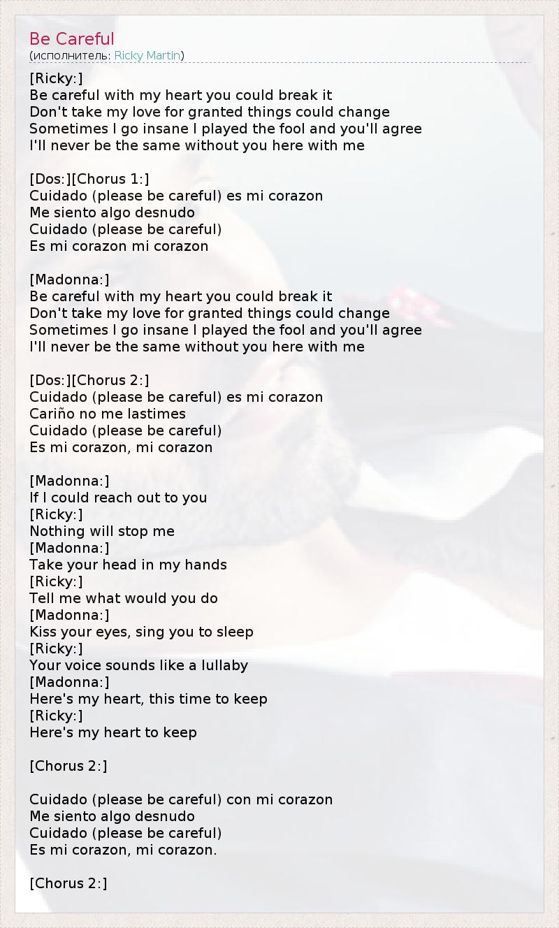 Осторожнее (пожалуйста, будь осторожнее) с моим сердцем!