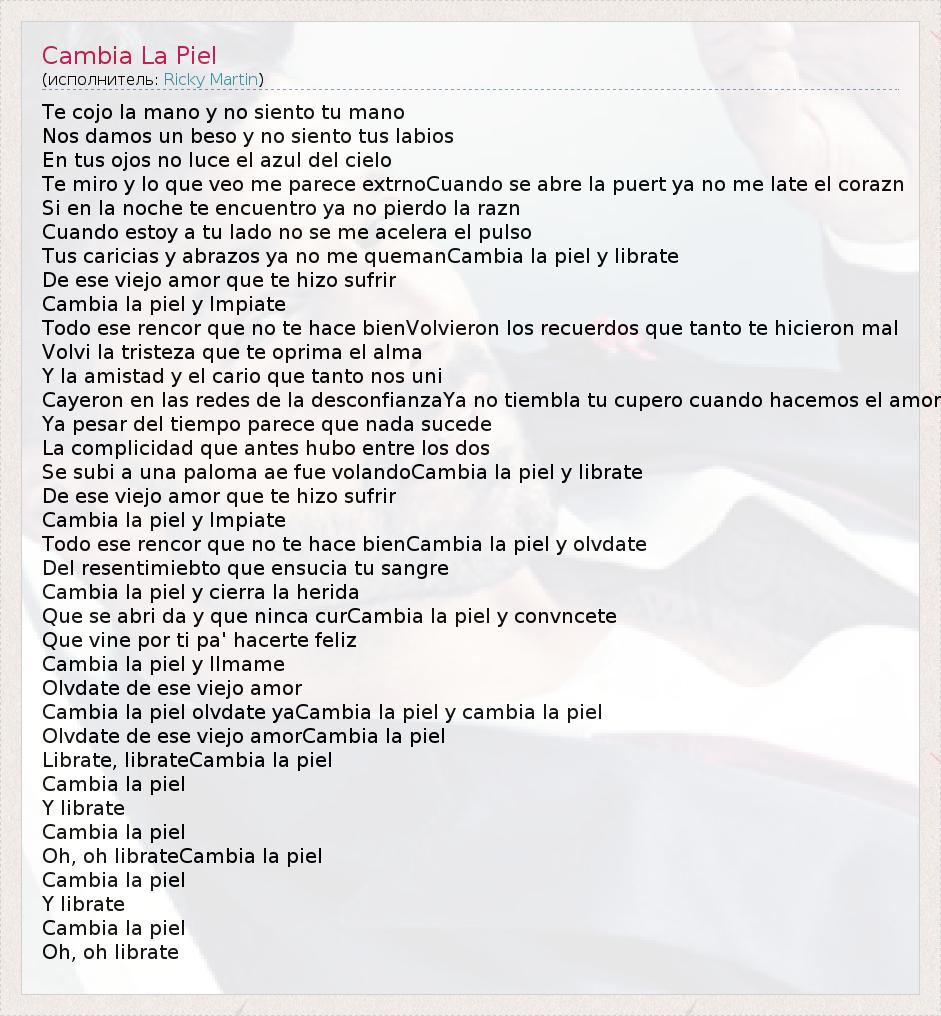 А как ты думаешь, о чем песня "Cambia La Piel" ?