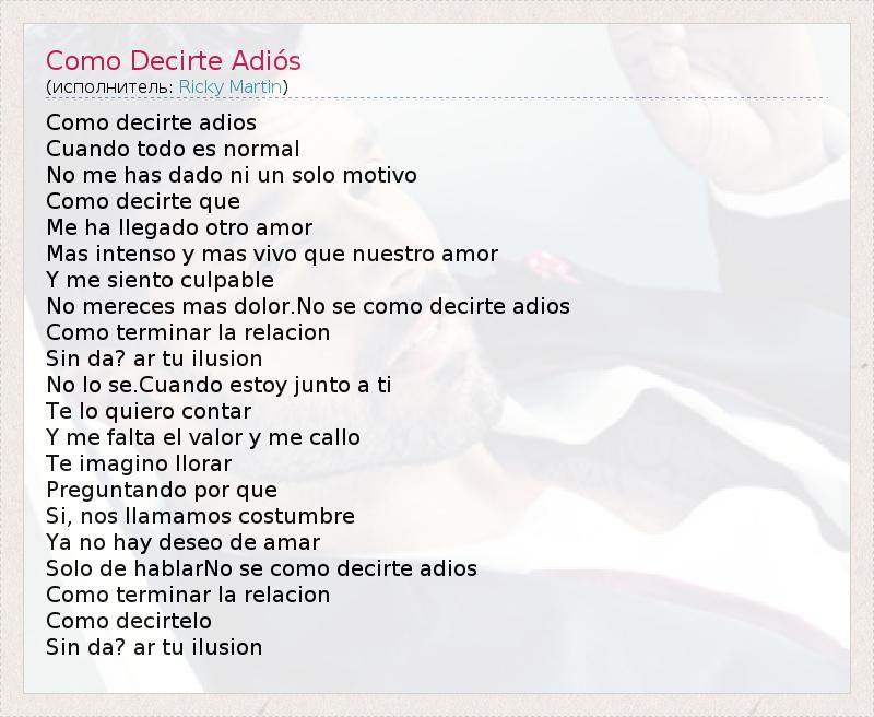 А как ты думаешь, о чем песня "Como Decirte Adiós" ?