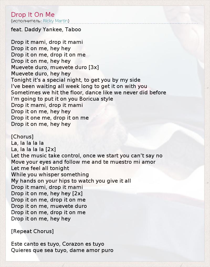 А как ты думаешь, о чем песня "Drop It On Me" ?
