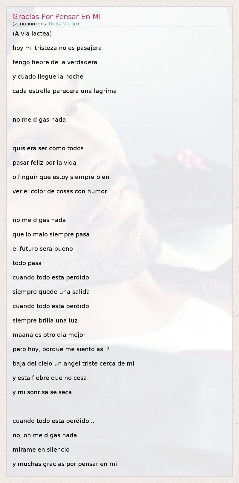 ГлавнаяИсполнителиRicky MartinGracias Por Pensar En Mi
