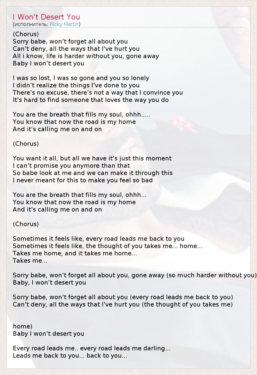 А как ты думаешь, о чем песня "I Won't Desert You" ?