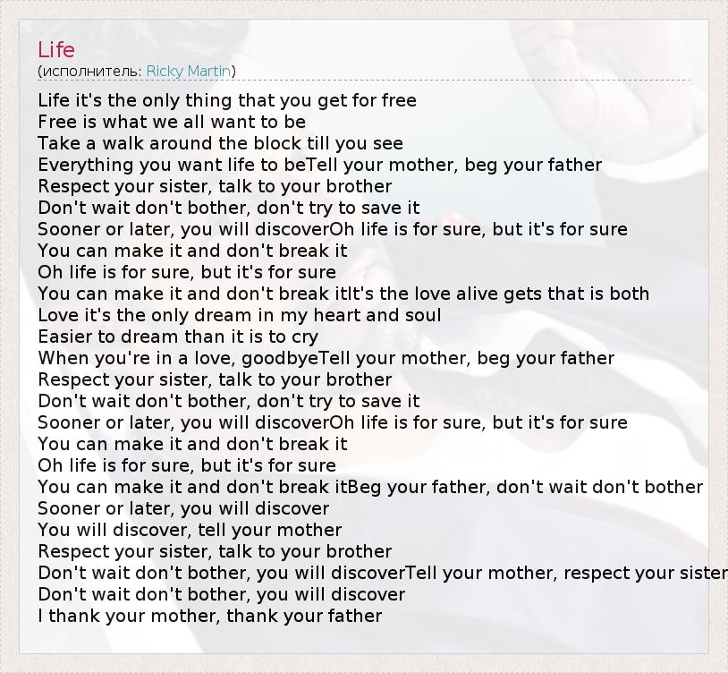 Don't wait don't bother, you will discoverTell your mother, respect your sister
