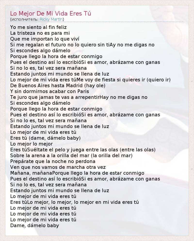 ГлавнаяИсполнителиRicky MartinLo Mejor De Mi Vida Eres Tú