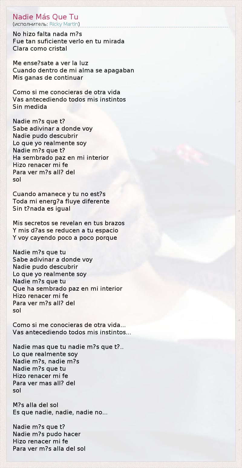 А как ты думаешь, о чем песня "Nadie Más Que Tu" ?