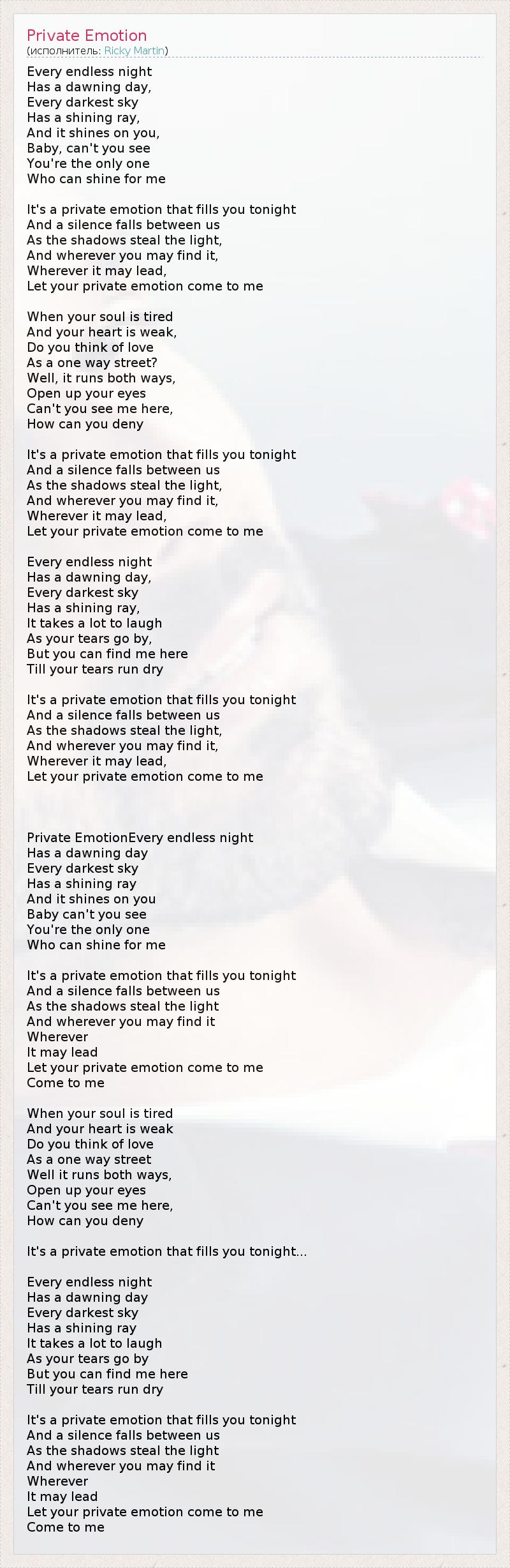 А как ты думаешь, о чем песня "Private Emotion" ?