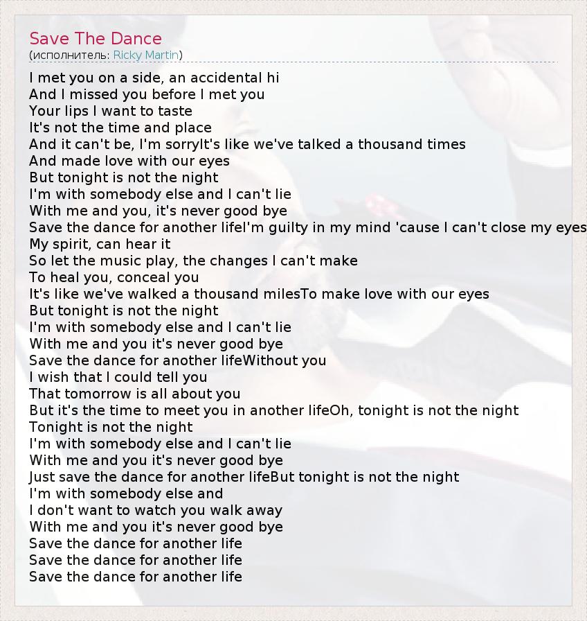Save the dance for another life